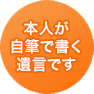 「自筆証書遺言」とは、文字通り、本人が自筆で書く遺言です。自筆がしなければならないのは、本文の全文、日付、氏名で、本人による捺印も必要です。当然ワープロや代筆によるものは認められません。また、使用する用紙については特に指定はないので、どのような紙でも大丈夫です。